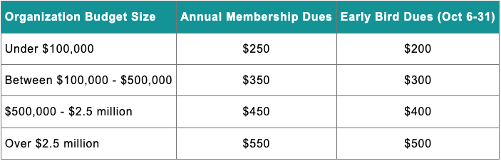 Finally, membership dues remain the same price as 2025 and are based on your annual operating budget for your current fiscal year.